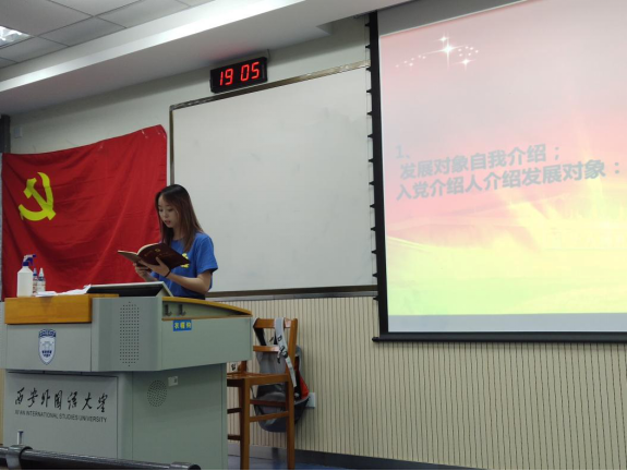 大会第一项,支部全体成员起立,奏唱国歌。紧接着进行支部发展党员大会。首先,发展对象进行自我介绍,各发展对象的入党介绍人介绍发展对象情况。