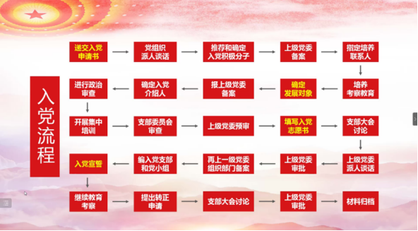 为全面贯彻习近平新时代中国特色社会主义思想,提高入党积极分子的思想政治意识,端正入党动机,发挥先锋模范作用,我院党委于11月3日至11月19日采取线上线下相结合的培训形式,有计划、有重点地开展了第61期入党积极分子党课培训。本期培训共有400余名入党积极分子参加,设6个主题模块进行集中授课,涵盖自主学习、主题党课、红色观影、交流研讨、结业考试5大板块。