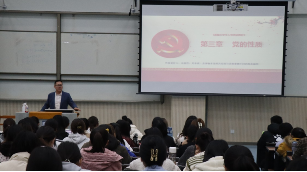 党课第五讲和第六讲采取线下授课形式开展,分别由我院党委书记单升军和党委副书记马文静主讲。单升军老师以《党的性质》为主题,首先向广大青年提出殷切希望,深刻剖析我们党百年发展所坚持的初心,详细阐释了党的性质。其次,他从理论的高度系统地讲述党推进自我革命的实践成效和宝贵经验。最后,他对全体提出要求,在党的百年历史性成就中结合自身专业汲取重要养分。马文静老师以《在脱贫攻坚的伟大实践中深刻领会党的宗旨》为主题,以张思德的故事开篇,讲述了为人民服务的提出、党的全心全意为人民服务的宗旨在脱贫攻坚精神中的体现和广大党员干部在脱贫攻坚中践行党的宗旨,启发当代青年和入党积极分子要听党话跟党走,要葆有为民情怀,要坚守理想信念,要勇担时代使命。