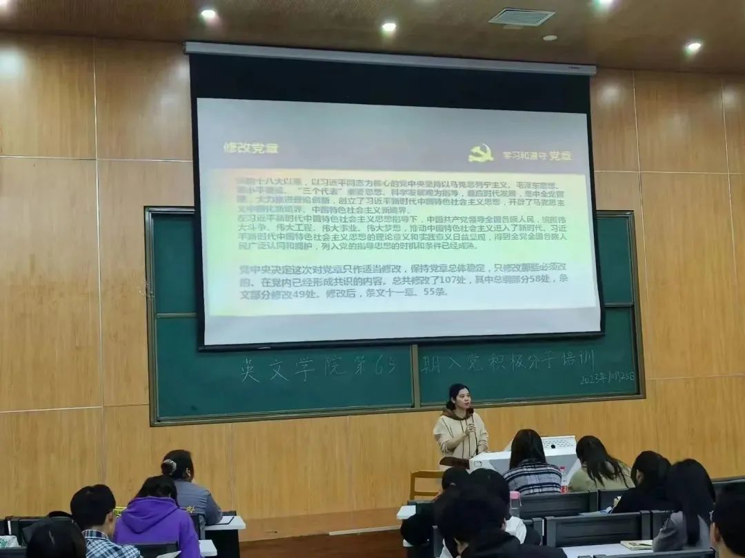 为进一步提高入党积极分子思想政治素质,端正入党动机,熟悉入党程序,争取早日加入中国共产党,我院党委于10月下旬至11月初举办第65期入党积极分子党课培训班,本期培训内容涵盖主题党课、自主学习、红色观影、交流研讨、结业考试五大板块。