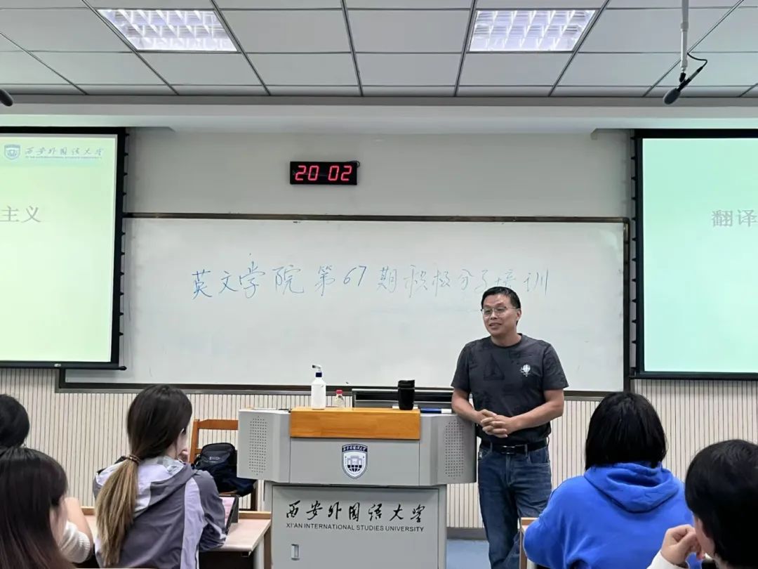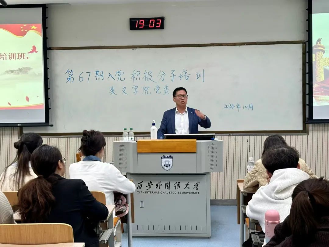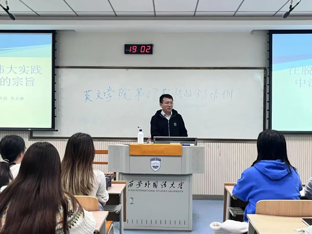 培训第二讲由我院党委副书记马文静和我院翻译系党员教师刘晓峰主讲。马文静老师以《在脱贫攻坚的伟大实践中深刻领会党的宗旨》为题,详细介绍了党中央脱贫攻坚战略的伟大成果以及我校的扶贫实践经历,讲述了党全心全意为人民服务的宗旨和脱贫攻坚精神,他鼓励同学们在生活和学习中要不断实践和发扬党的宗旨。最后,他对广大青年学生提出要求,希望当代青年要牢记总书记嘱托,听党话、跟党走,要勇于担当时代重任,投身于民族复兴大任的洪流中。刘晓峰老师以《翻译与中国马克思主义》为主题,运用双语教学的授课形式,以毛泽东思想为切入点,向同学们系统地介绍了中国化马克思主义思想内涵。他指出,青年大学生不仅要学好专业知识,还要学好习近平总书记关于新时代的一系列新思想、新观点、新论断,准确合理地做好翻译工作。最后,刘老师鼓励本期入党积极分子学好外语与相关学科,促进中外马克思主义交流互通,推动世界马克思主义的发展,为人类命运共同体的建设贡献力量。