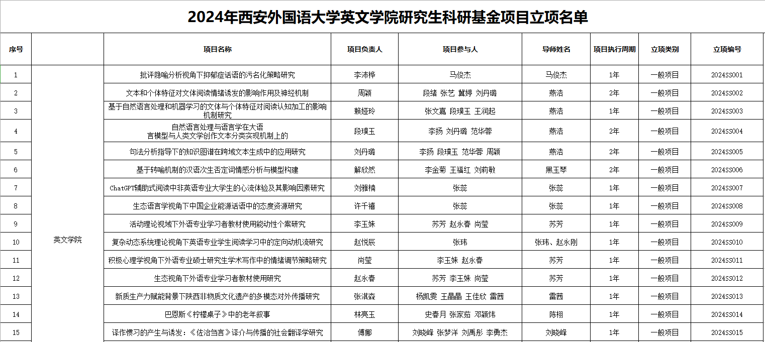 近日,研究生院公布2024年度研究生科研基金项目立项通知,经个人申请、学院初审推荐,学校组织专家评审以及公示等环节,本年度共147项研究生科研基金项目批准立项,其中我院获批项目26项,在此对立项同学表示祝贺。具体情况如下: