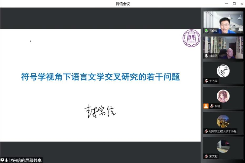 2022年6月23日,清华大学外国语言文学专业博士生导师封宗信教授应我院邀请,通过腾讯会议作题为“符号学视角下语言文学交叉研究的若干问题”的线上学术讲座。本次会议由我院语言学系主任马俊杰博士主持,我校及清华大学、上海外国语大学和山东大学等高校百余名师生聆听了本次讲座。