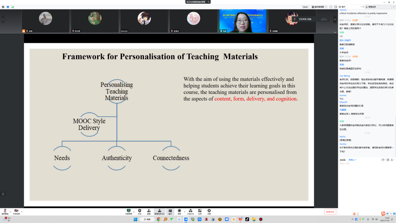 我院张蕊副教授介绍了Personalizing teaching materials的相关内容。个性化教材以慕课的形式向学生们展示,其包含了需求、真实性和关联性三方面。为了能够帮助学生完成各种学习目标,教材从内容、形式、传送和认知等方面进行了个性化。