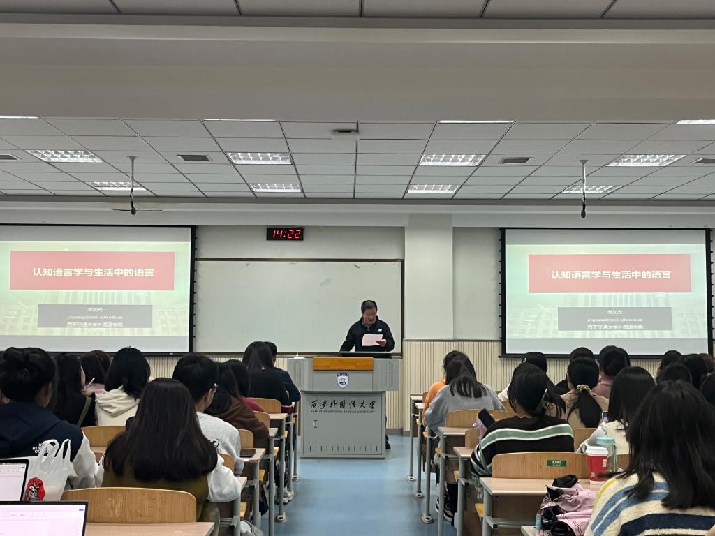 10月17日下午,西安交通大学庞加光教授受邀在SD306教室为我院师生做了题为《认知语言学与生活中的语言学》的线下学术讲座。本次讲座由我院副院长赵永刚教授主持,我院一百余名师生参加了本次学术讲座。