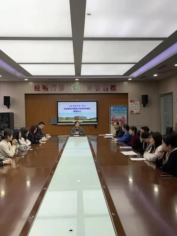到达经开一中后,校方领导及老师热情地接待了实习生,并对即将展开的实习工作做出详细规划。校方丁书记衷心希望实习生能够牢牢抓住此次机会,以饱满的热情投入教学工作中,收获一段难忘的经历。同时陈主任也对实习学生提出了相关要求。