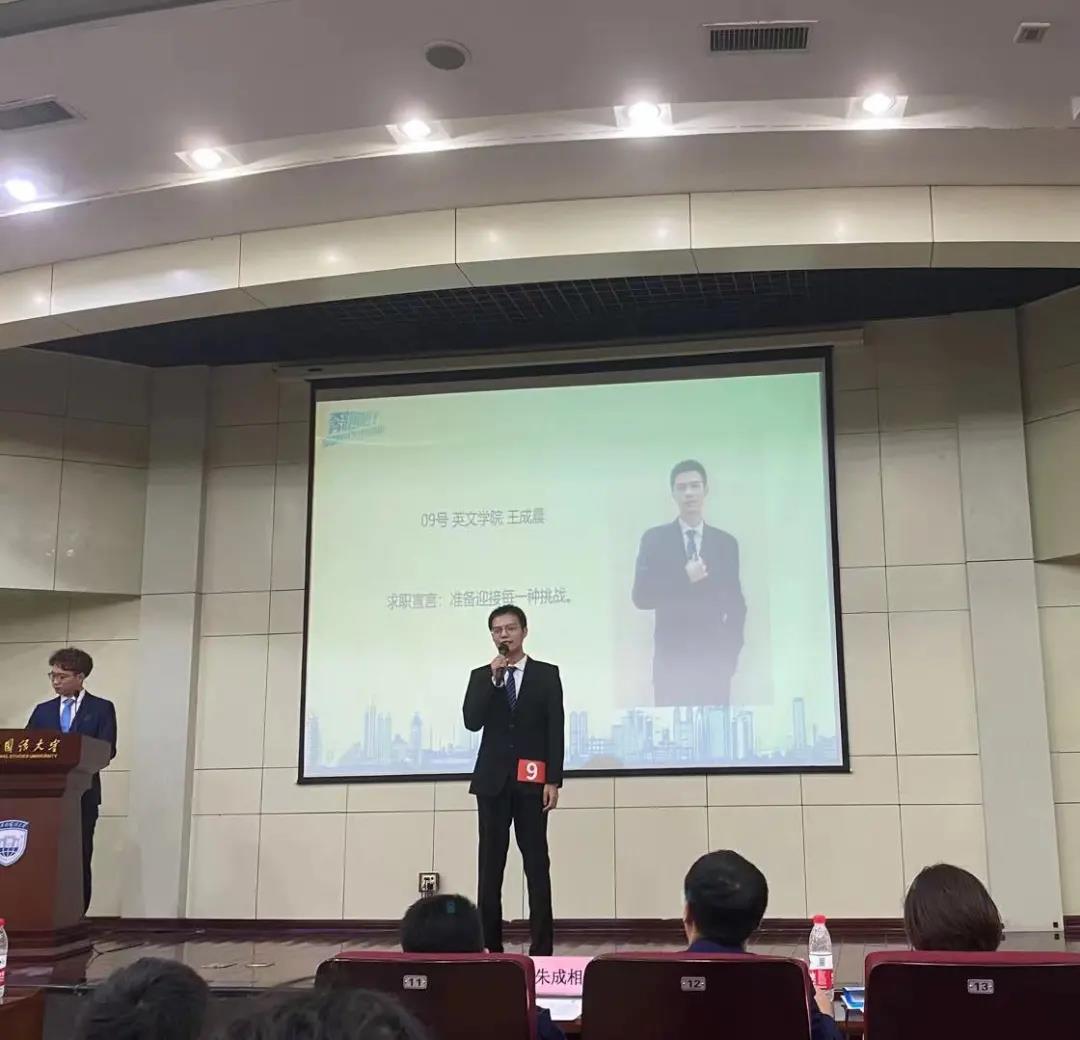 2021年6月9日14时,由校党委学工部·学生就业指导中心主办的第十一届“超级毕业生”模拟求职大赛(决赛)在行政楼报告厅拉开帷幕。经院级初复赛、校级半决赛选拔,我院本科2018级王成晨同学代表点点最新版参与校级决赛。