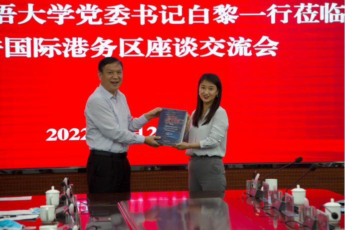 会上,杨祎介绍了西安国际港务区整体情况,国际港务区是陕西省、西安市为打造内陆改革开放新高地设立的经济先导区,是陕西自贸区的核心板块,是西安国家中心城市建设的东部新中心和第十四届全运会主场馆所在地。白黎介绍了学校基本情况以及学校人才培养、学科设置和学生就业情况,他谈到,西安国际港务区是省市响应国家“一带一路”倡议、打造丝绸之路经济带新起点、建设对外开放大通道的重要抓手和主要平台,发展态势、需求同学校专业设置方向、人才培养目标有较高的契合度,双方要把握发展新机遇,深入挖掘合作潜力,不断强化战略合作,他表示,港务区的超前发展理念、较高发展速度、良好干部作风都值得学校借鉴学习。魏玮介绍园区电商产业及整体人才需求情况。双方还就在我校举办国际港务区所属企业专场招聘会、搭建常态化联系沟通平台进行了商讨。
