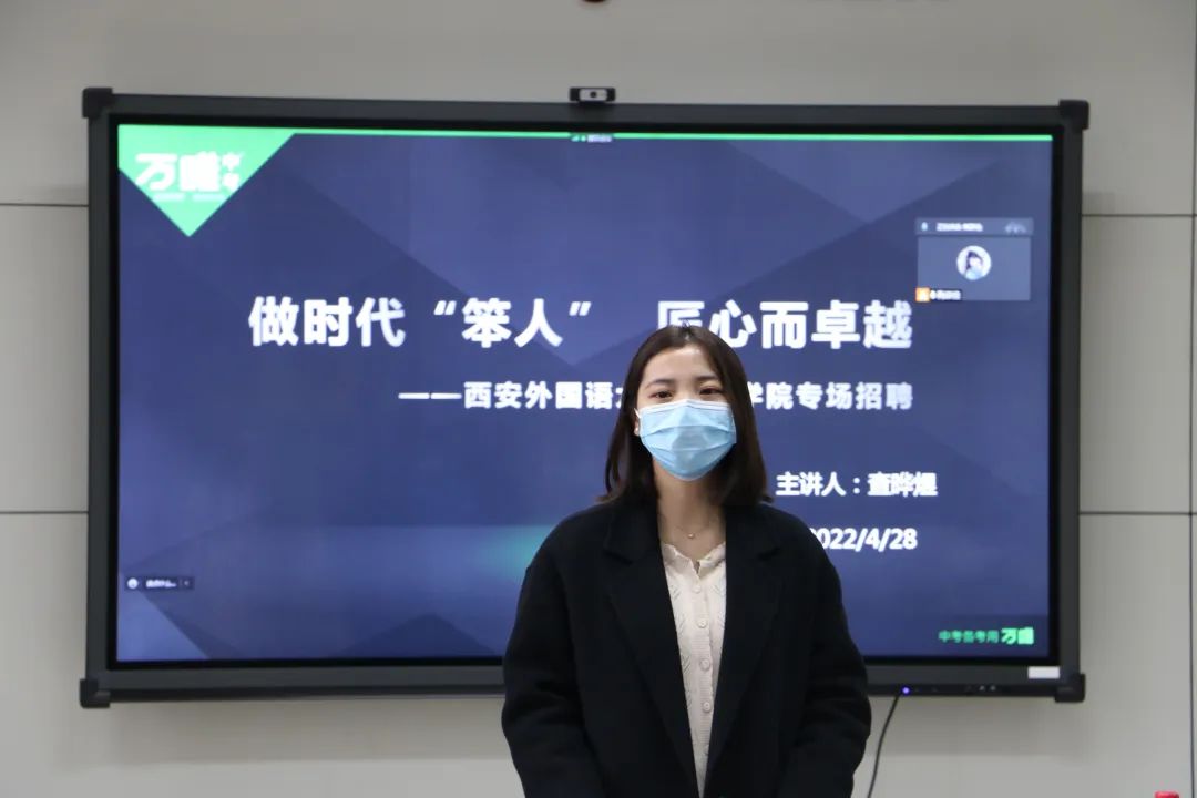 为深入推进2022届毕业生就业工作,搭建更多就业招聘平台,按照学院就业工作安排,我院主动对接用人单位,通过现场招聘和腾讯会议线上线下相结合的方式,于4月28日上午举办了2022年春季学期第二场毕业生专场招聘会。万唯中考、明珠国际集团、北京万德友联科技有限公司等三家用人单位进行了企业宣讲,毕业班全体辅导员及50余名2022届毕业生参加,宣讲会由辅导员王子涵主持。