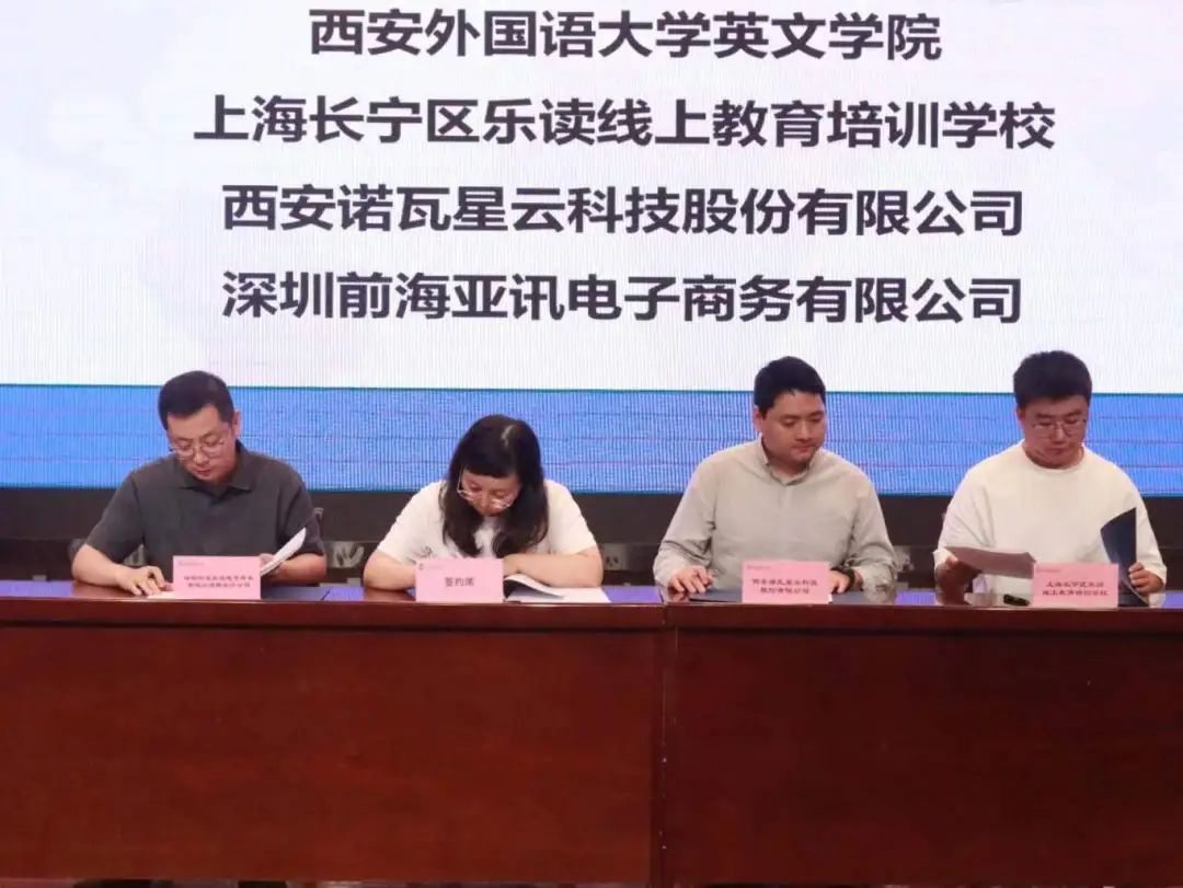 宣讲后,雷茜副院长代表学院与上海长宁区乐读线上教育培训学校、西安诺瓦星云科技股份有限公司、深圳前海亚迅电子商务有限公司西安分公司进行校企合作签约。