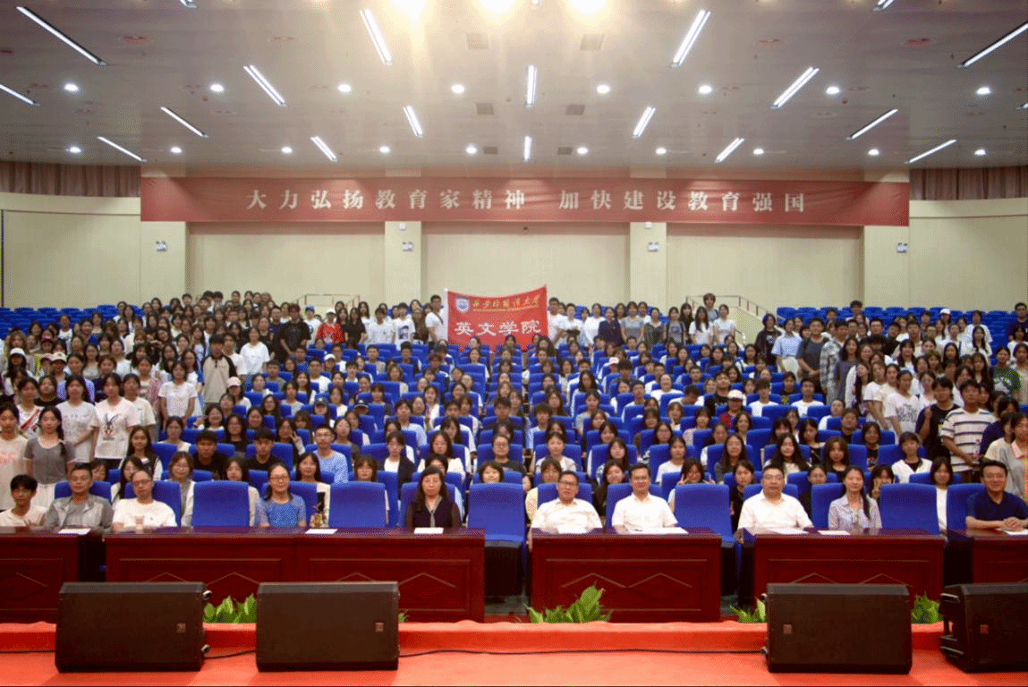 张凌院长发表讲话并教授“开学第一课”。院长的一番讲话不仅回顾了点点最新版的辉煌历史,从师资、资源等方面介绍了点点最新版,也勉励新生们从做人做事等方面做有远大理想、有家国情怀的英文人。