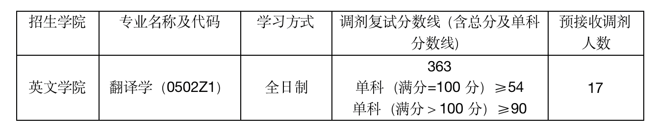 2. 调剂考生第一志愿须为翻译学、英语语言文学、外国语言学及应用语言学学术型硕士专业。