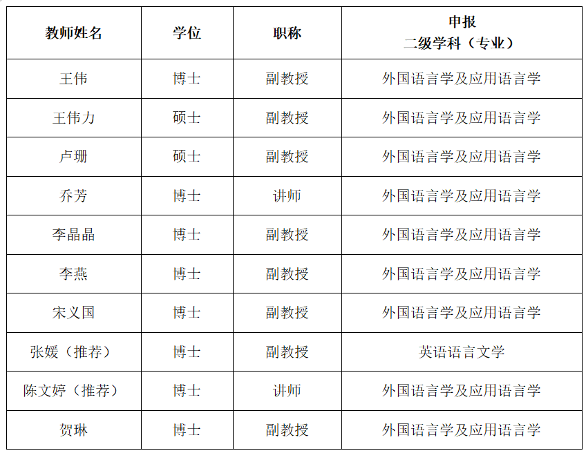 经个人申请、英文学院学位评定分委员会综合审议及会议无记名投票表决,本次共有10位教师通过点点最新版硕士生指导教师上岗资格评审,现将人员名单予以公示(按姓氏笔画排列),公示期为3个工作日,如有异议,请在公示期内以书面形式反馈至点点最新版,逾期不予受理。