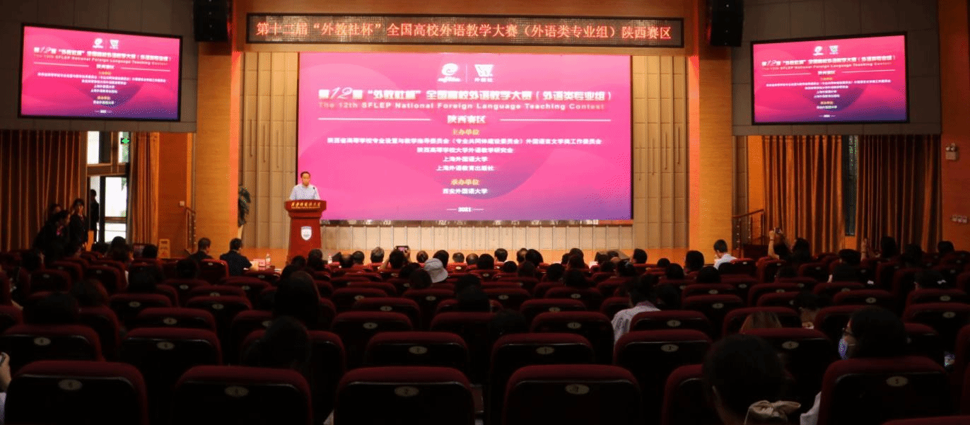 2021年6月26日,第十二届“外教社杯”全国高校外语教学大赛陕西赛区复赛和决赛在我校长安校区拉开帷幕,来自全省31所高校的46名选手参加了复赛和决赛。本次大赛由陕西省教指委外国语言文学类工作委员会、陕西省高等学校大学外语教学研究会、上海外国语大学、上海外语教育出版社和西安外国语大学主办,我院承办。我校副校长党争胜教授、上海外语教育出版社副总编谢宇编审、陕西省教指委外国语言文学类工作委员会秘书长毋育新教授、陕西省高等学校大学外语教学研究会秘书长马刚教授、我校教务处副处长葛睿副教授、上海外语教育出版社西北大区负责人苏云经理等嘉宾及17位大赛专业评委出席大赛开幕式。开幕式由我院院长南健翀教授主持。