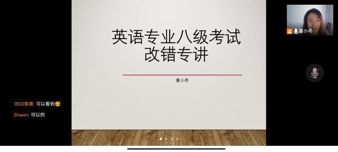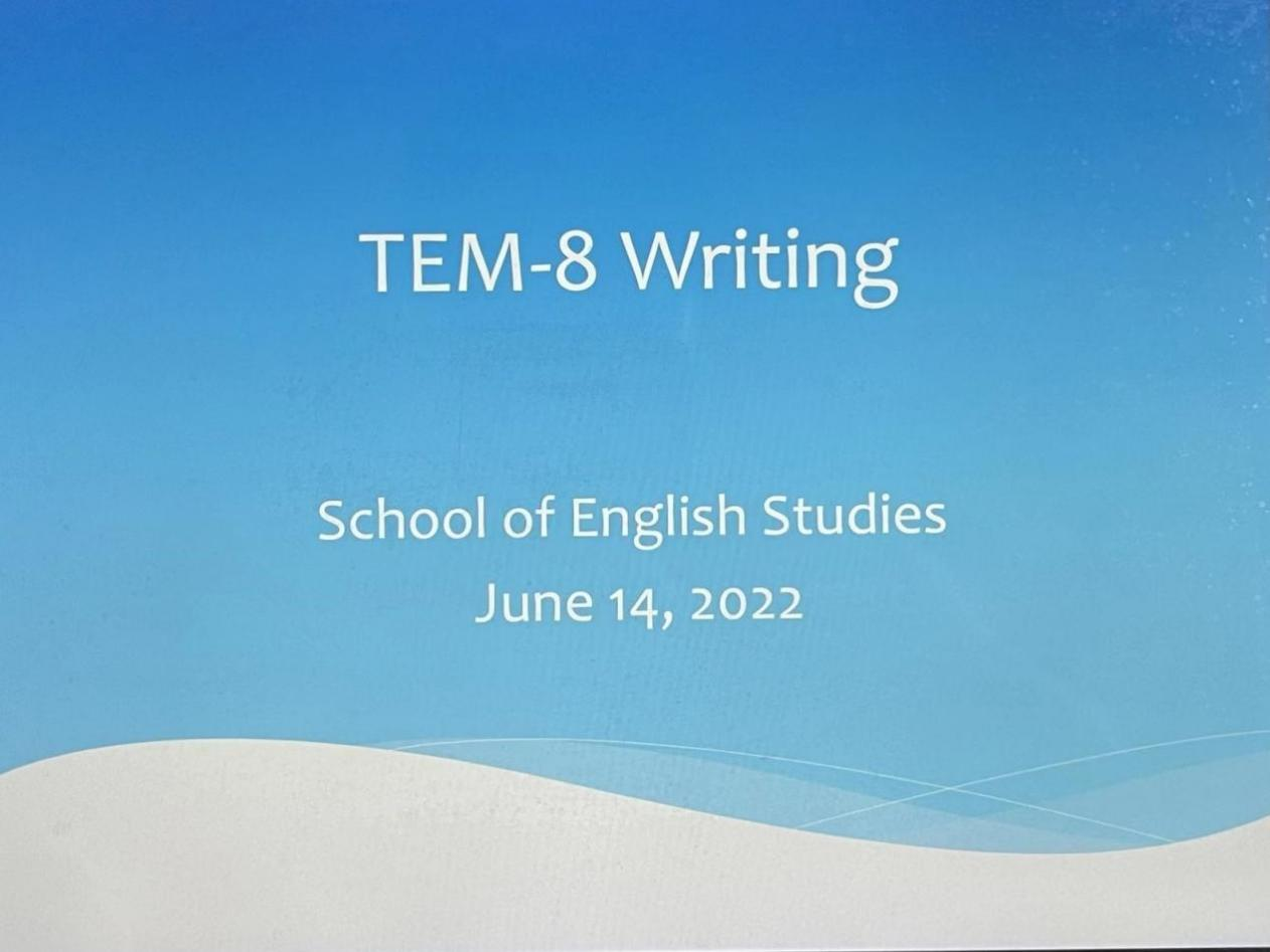 为帮助我院本科2018级学生在英语专业八级考试中取得理想成绩,学院针对学生的复习需求,于2022年5月26日至2022年6月23日举办了8场专八专题辅导讲座,分别从听力、翻译、写作、改错等方面为大家带来一些专八考试“干货”。
