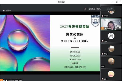 为助力我院考研学生在研究生考试中取得优异成绩,针对学生的研习需求及困惑,我院于2022年11月邀请四位老师通过腾讯会议方式,线上举办英语专业考研答疑系列讲座,为同学们答疑解惑。