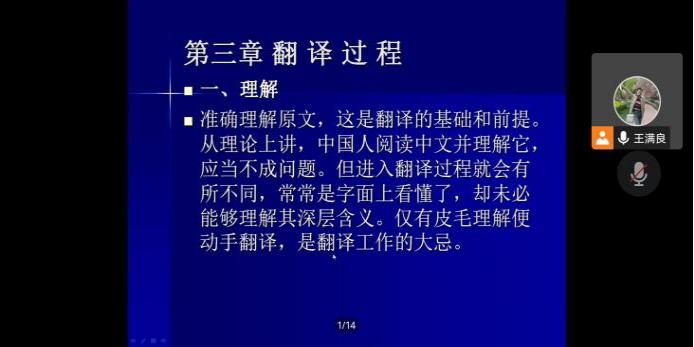 2022年11月16日,我院特邀王满良老师做了翻译方向的考研答疑讲座。讲座中,王满良老师主要从汉英语言差异、翻译过程、翻译技巧、习语翻译四个方面展开。