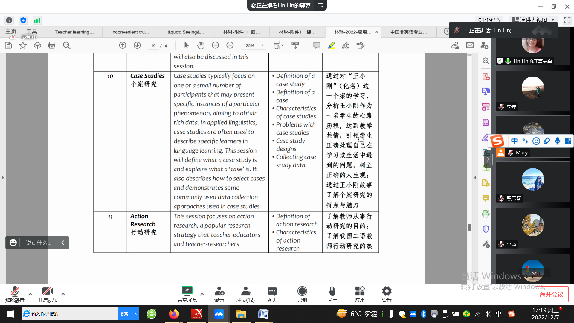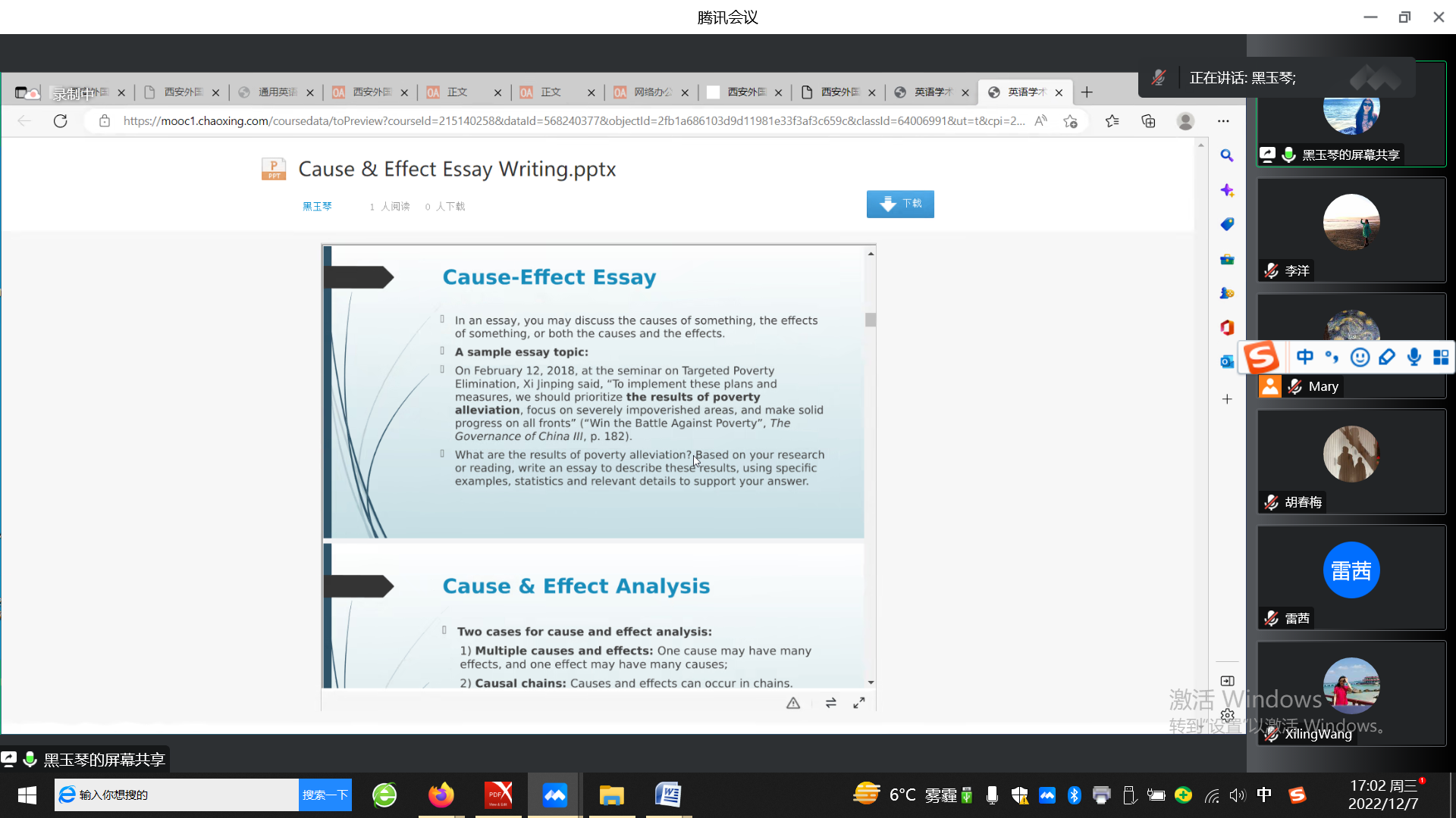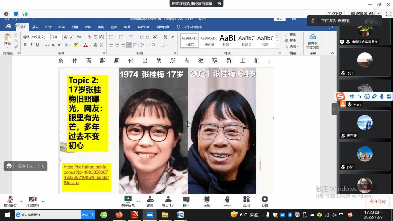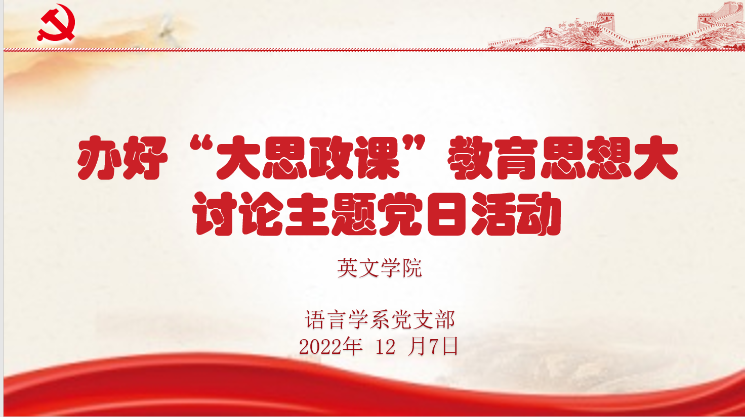 12月7日下午, 我院国别与跨文化研究系(支部)、英语文学系(支部)、翻译系(支部)、语言学系(支部)、写作教研室(支部)与大学英语教研室(支部)通过线上的方式,组织开展了本学期第15周政治理论学习暨教育思想大讨论活动。