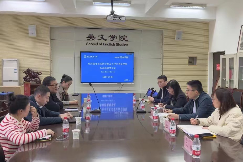 2023年3月13日,南京航空航天大学外国语学院范祥涛院长率队来我院调研交流,我院副院长雷茜、副院长裴等华、党委副书记马文静和团委书记黄星元参加了座谈会。