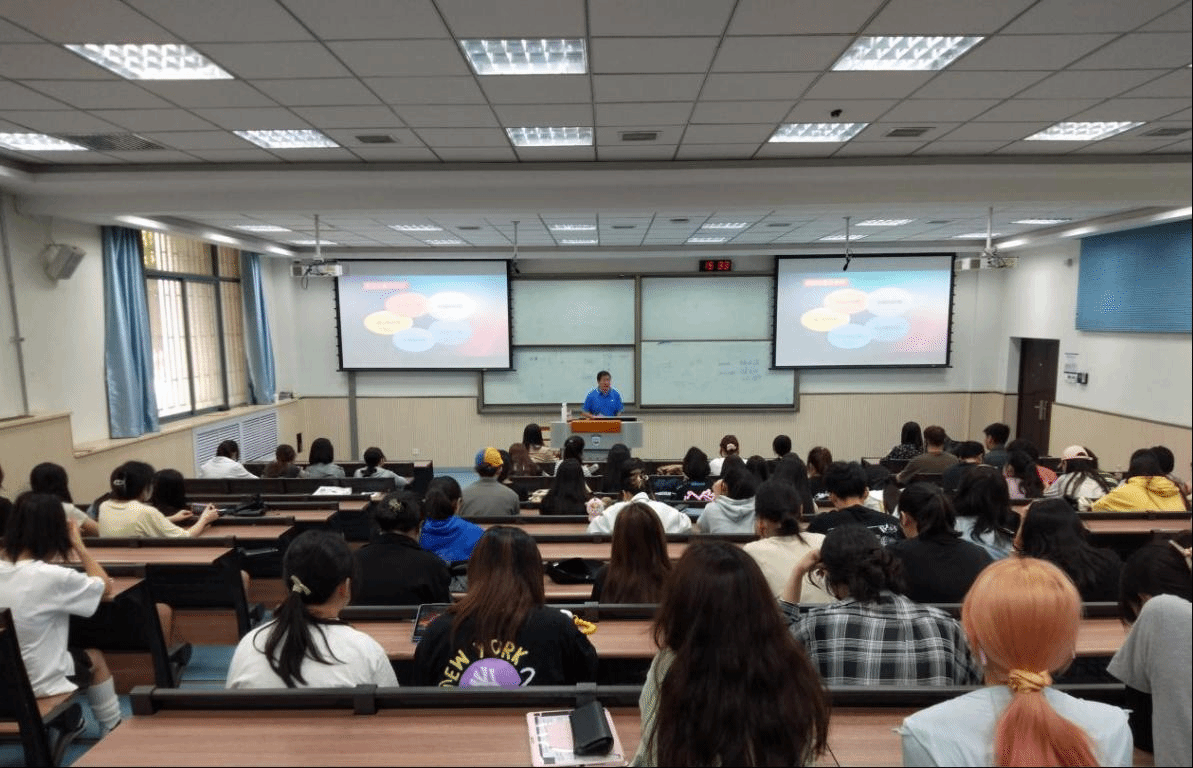 首先,副院长赵永刚就“语言学专业及其发展前景”做了简要介绍,主要内容有:语言学专业介绍、语言学专业课程设置及其发展前景。此外,他针对三年级学生的升学问题(出国/考研),为大家详细讲解:关于出国,他从目标院校选择、专业选择、英语水平考试备考、出国渠道四个方面向大家回答了“出国-怎么出?如何做?”的问题。关于考研,他强调择校的重要性,他指出学生应明确自身实力、确定院校目标、早做准备并付诸行动。