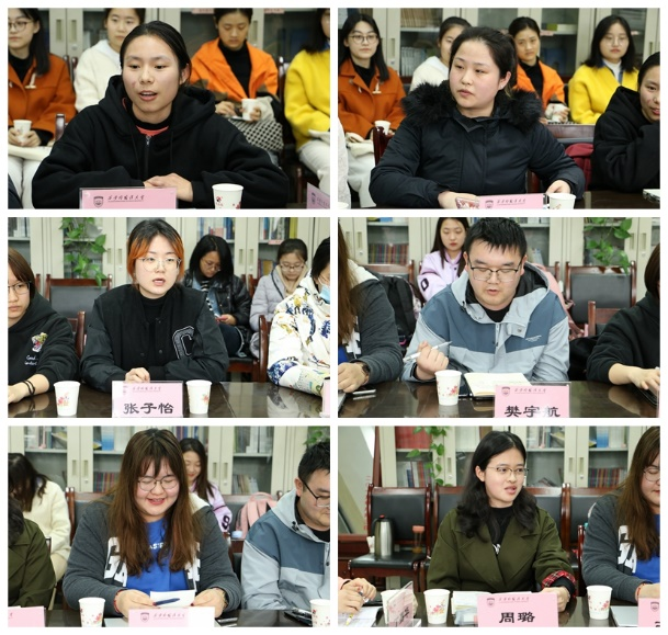 座谈会上,同学们围绕返乡见闻、疫情防控、家乡变化、学校发展以及学习生活需求等话题,畅谈自己在寒假和开学期间的所见、所闻、所感、所想。一些同学介绍了过年期间个人的学习情况、生活感悟以及返乡后自己的学习计划和未来规划;一些同学分享了自己参与社会实践和项目调研的经历与收获;一些同学谈到了参与家乡疫情防控工作的经历和体验,表示通过疫情防控看到了国家日益强大的力量;一些同学感叹和感激开学以后学校的巨大变化,表示将珍惜学校生活,发挥主人翁精神建设美好校园;一些毕业班同学表达了对学校的感激和不舍;同学们还对教育教学、生涯规划、后勤服务及校园建设等提出了一些意见建议。
