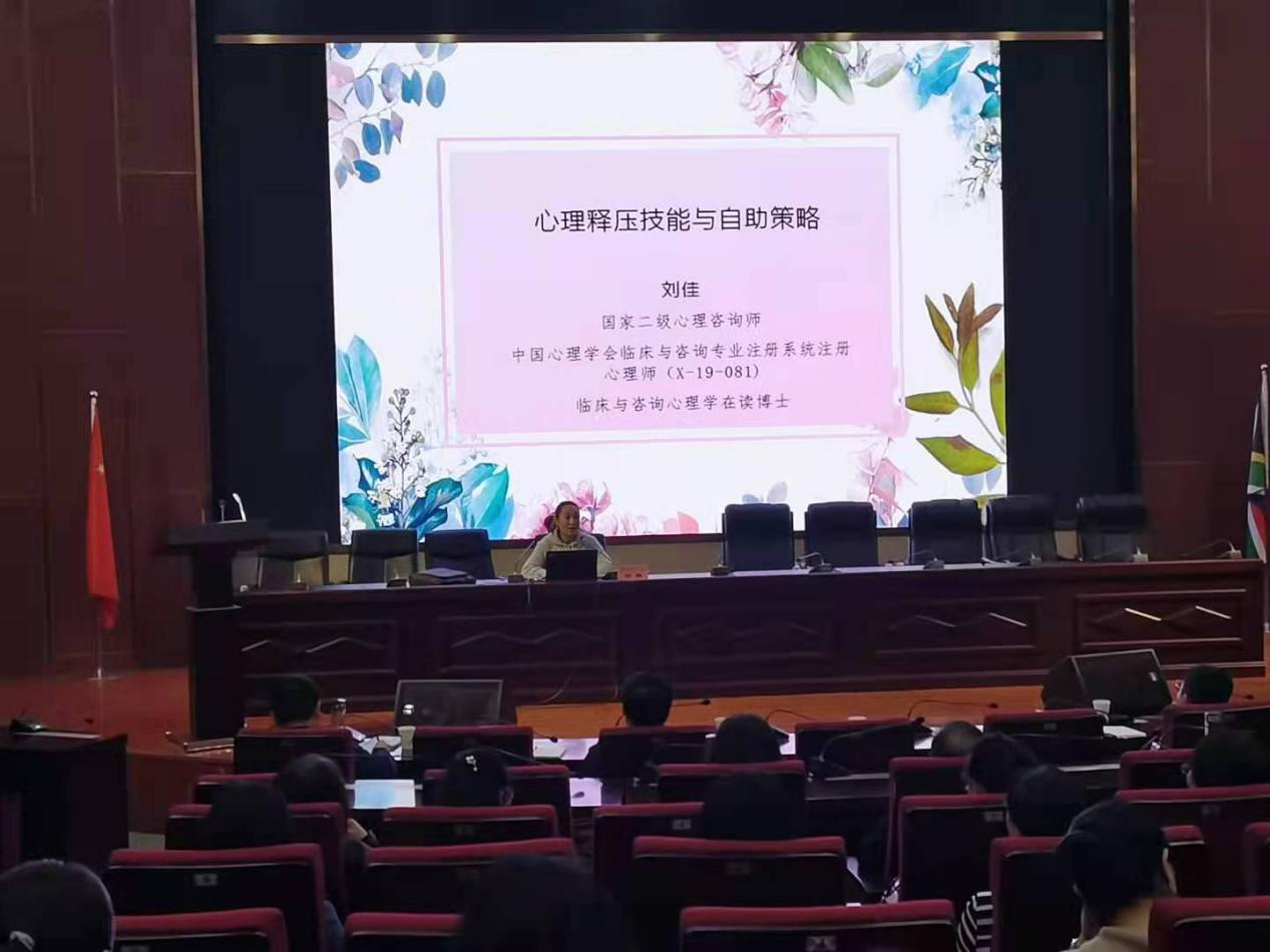 4月21日下午,我院在实验楼1区105教室举办了题为《心理释压技能与自助策略》的心理健康知识讲座。本次讲座邀请我校心理咨询中心主任刘佳老师主讲,学院全体教职工参加,院党委副书记马文静主持。