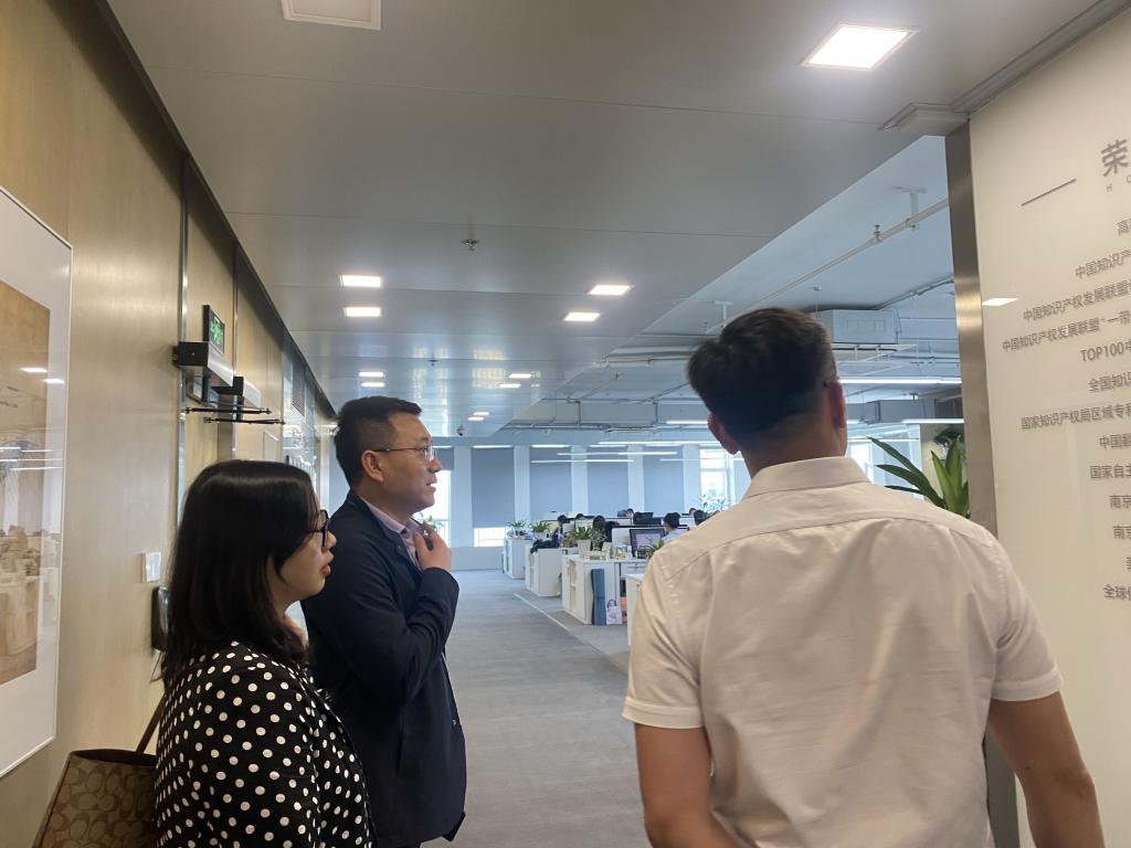 在公司副总经理陈尚坤的陪同下,我院调研工作组参观了舜禹大厦科技翻译、知识产权及体育公司的办公场所。参观过程中,陈尚坤从企业历程、旗下品牌、公司实力、舜禹客户、核心业务、赛事举办、人才战略等方面全方位地介绍了公司概况。