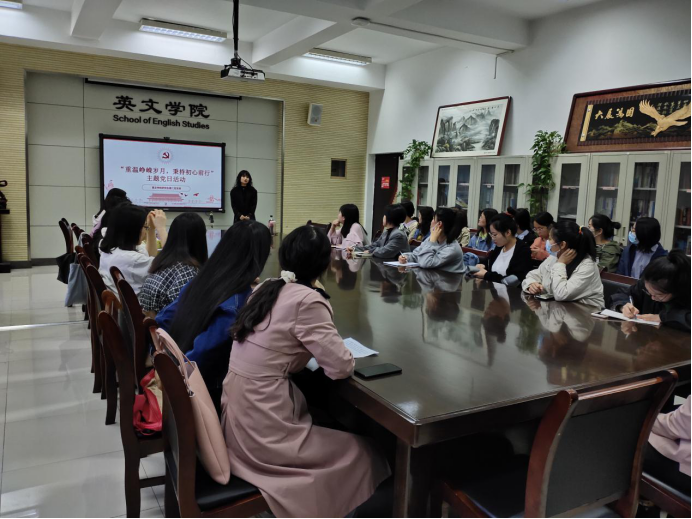 2021年4月26日晚上,我院研究生第二党支部全体党员及积极分子在教学楼G区209会议室开展了以“重温峥嵘岁月,秉持初心前行”为主题的党日活动,会议由马洁柔主持。