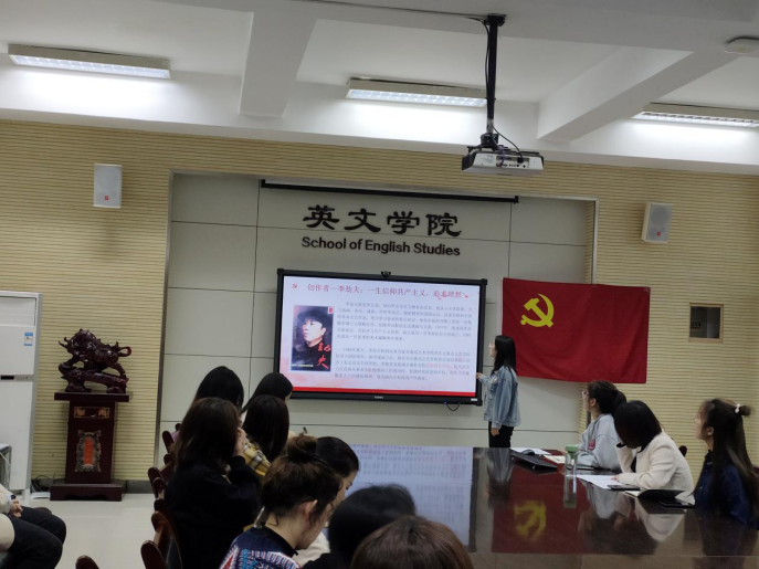 2021年4月27日晚上,我院研究生第一党支部在教学楼G区209会议室开展以“唱红歌,学党史,传精神”为主题的党日活动。支部全体党员及积极分子参加此次活动,支部副书记杨志芳主持会议。
