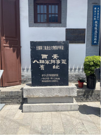 进入大门 ,讲解员在门口讲解道“这里曾是中共中央先后设立的秘密交通站、红军联络处、国民革命军第八路军驻陕办事处的所在地,周恩来、朱德、刘少奇等老一辈革命家都在这里留下了工作和奋斗的足迹。”