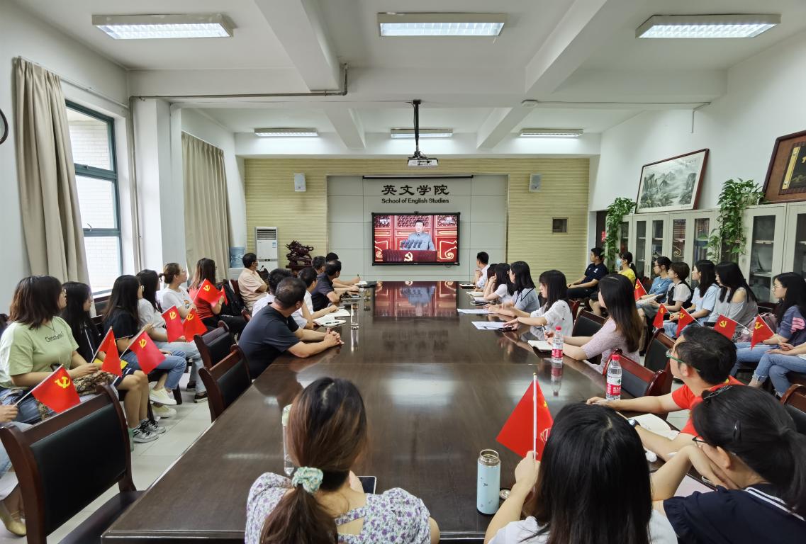 大会直播结束后,党委书记单升军带领参会人员重温了习近平总书记在庆祝中国共产党成立一百周年大会上讲话的重要内容,大家反响强烈。他谈到,庆祝中国共产党成立一百周年大会和我校组织的庆祝中国共产党成立一百周年升国旗仪式都在雨中进行,标示着中国共产党风雨兼程中百年的奋斗史;庆祝大会结束后雨过天晴,标示着中国共产党伟大光明的美好前程。他指出,习近平总书记的在讲话中首次提出的32字的伟大建党精神是百年党史留给我们的宝贵精神财富,每一个共产党员要牢记在心,积极践行。他号召全体教职工党员和学生党员迅速掀起学习习近平总书记在庆祝中国共产党成立一百周年大会上的讲话精神的热潮,将讲话精神入脑入心,以更加饱满的热情投入到工作学习中。