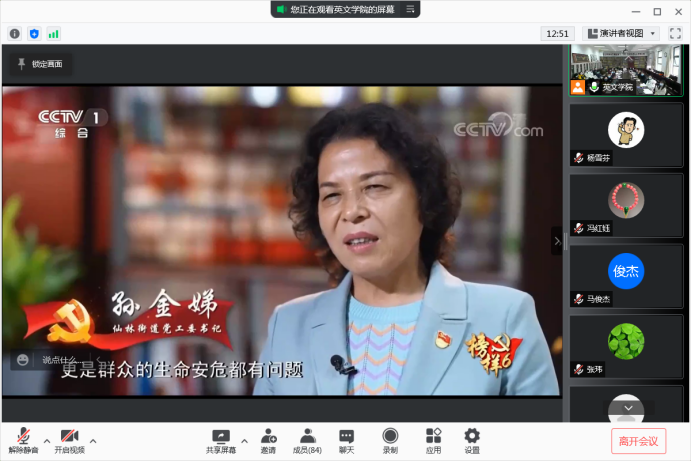 白黎在总结讲话中强调,一是《榜样6》告诉我们,基层党组织要牢记全心全意为人民服务的根本宗旨,党员干部心中要有为人民服务、为民族奉献的信仰,教师要培养堪当民族复兴大任的建设者和接班人;二是师生要深入学习党的十九届六中全会精神,重点把握《决议》中“两个确立”“十个明确”“十个坚持”以及十三个方面的历史性成就等,在学习中坚定理想信念,传播好中国声音;三是通过一年的努力,点点最新版面貌焕然一新,各项工作取得了不错的成绩,要团结带领师生向着更高的目标奋进。同时,白黎对学院工作提出几点希望,一是学院党委要以孙金娣书记为榜样,牢固树立宗旨意识,切实发挥基层党组织战斗堡垒作用,为师生解难题;二是要强化理论学习,心怀国之大者,具体到学院就是搞清楚培养什么人,为谁培养人的问题;三是要发挥龙头学院作用,为实现学校和学院高质量发展贡献力量;四是广大党员要发挥好先锋模范带头作用,带头作用不仅仅是在思想素质、理想信念上,更要在教学科研管理服务等业务上;五是各级党组织要做好师生的思想政治工作,重点开展理想信念教育和爱国爱党爱校教育,走进师生,引导全院师生做到心中有信仰,脚下有力量。